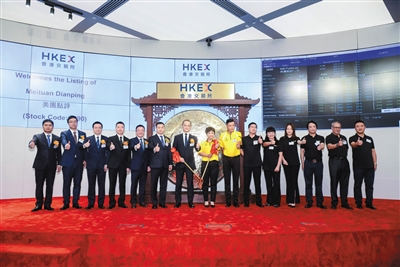 9月20日9时30分许,港交所大厅200多人的倒数声中,美团点评创始人兼CEO王兴和一对夫妻外卖骑手共同执槌,敲向那面200公斤的铜锣。