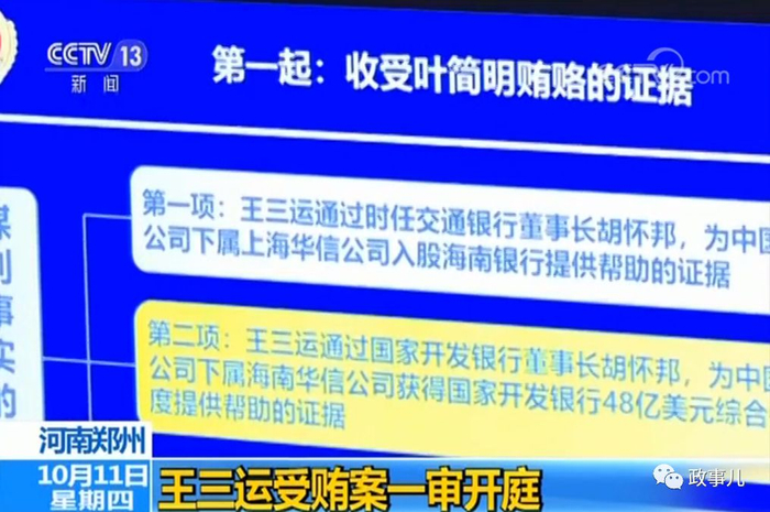 据央视新闻报道,庭审中,公诉机关出示了相关证据,视频画面显示,相关证据中,第一起为“叶简明贿赂的证据”,也就是说王三运非法收受的6685万余元中,有叶简明的“贡献”。