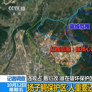 10月12日晚,央视新闻频道《东方时空》栏目对安徽宣城市的扬子鳄国家级自然保护区遭破坏的相关情况进行了报道。