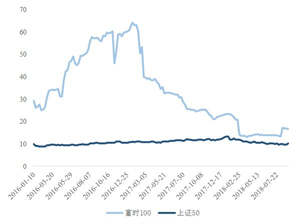 富时100与上证50市盈率差距有所减小