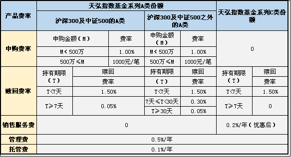 天弘指数基金费率表