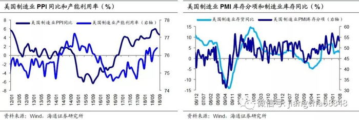 变化二:政策扰动,增速明年或放缓。其次,今年美国的一些新的政策一定程度上也会改变经济增长的节奏。一是减税政策对经济增速带来的变化。减税的刺激效果在之后几年会递减,并且本次减税还不同于以往几轮经济下行时的减税,是发生在经济复苏时期,因而效果传导也可能更快;二是今年特朗普发起贸易摩擦可能透支美国未来的增长,短期内,美国企业倾向于抢先进口,扩大库存投资。但未来如果短期扩大进口带来的主动补库存减弱,那么存货投资在经历前期透支后,很可能回落。2季度美国制造业存货同比增速已从1季度的5%左右降至3%。而长期看,贸易摩擦也会提升经济运行的成本,不利于美国经济效率提升和增长。这两方面因素叠加,又拉高了今年的基数,也会压制明年经济的增速。