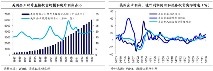 一方面,美国很多大企业都是跨国经营,这样的环境下,其境外利润会受到影响。17年美国企业的境外利润大约占到企业全部利润的21%,而今年新兴市场经济普遍减速,欧洲、日本经济复苏步伐也放缓,这将使得美国企业的境外利润增速放缓,那么相应的汇回利润也会受到影响,进而不利于跨国公司继续扩大投资。
