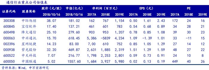 申万宏源建议投资者关注:中兴通讯(000063.SZ)、烽火通信(600498.SH)、宝信软件(600845.SH)、光环新网(300383.SZ)、中际旭创(300308.SZ)、中新赛克(002912.SZ)、星网锐捷(002396.SZ)等。