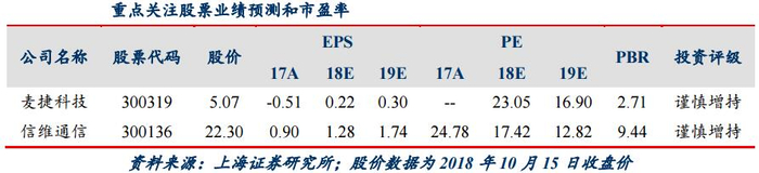 上海证券认为,LTCC射频元件符合终端应用小型化和多功能化的发展趋势,并且国产替代空间广阔,麦捷科技(300319.SZ)未来业绩看好;信维通信(300136.SZ)目前射频前端业务获得更多客户的认可与采用,订单不断增加,逐步成为客户的核心供应商,未来5G发展将增厚公司LCP、LDS天线业务业绩。