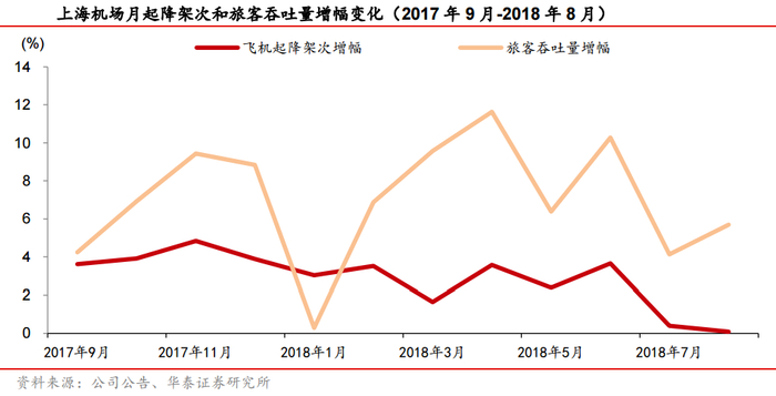 上海机场9月起降架次同比下降0.28%,估计可能受控总量政策的实施的影响。中金公司发现,其中国内线基本与去年同期持平,国际线同比下降0.47%,估计与日本自然灾害负面影响有关。据CAPA本周数据显示,按照座位数口径,日本为浦东机场第一大国际目的地,座位数占比接近20%,但今年9月台风“飞燕”叠加热门旅游地北海道地震,日本两大机场关闭数日对国际线有所影响。