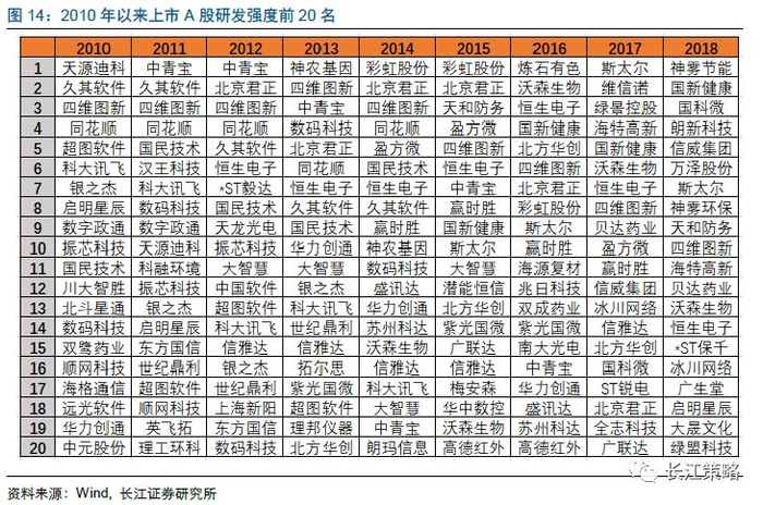 综上所述,在外延式并购产生的业绩对赌和商誉减值风险逐步释放的市场环境下,对于成长或科技型企业依靠研发投入实现内生增长的模式需更加倚重。从全球范围内来看,虽然企业研发投入的动机、研发是否能够带来后期利润的提升没有一致性的结论,研发强度和支出的高低也并没有与企业营收和利润有显性的关系,但研发支出和强度的提升无疑给了企业短期估值层面更多的想象空间。而从长期回报角度,相比较小型企业更高研发强度以追求不确定性较高的回报而言,对于大型企业稳定的研发投入产生的持续效益还是值得报以信心的。