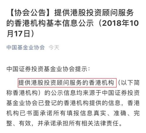 随后,基金业协会也于9月19日也下发了《关于为提供港股投资顾问服务的香港机构开展备案的通知》。备案通知发布不到1个月时间,首批备案机构已经出炉。