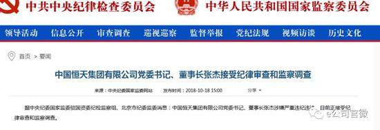 10月18日,中纪委网站公告,据中央纪委国家监委驻国资委纪检监察组、北京市纪委监委消息:中国恒天集团有限公司党委书记、董事长张杰涉嫌严重违纪违法,目前正接受纪律审查和监察调查。