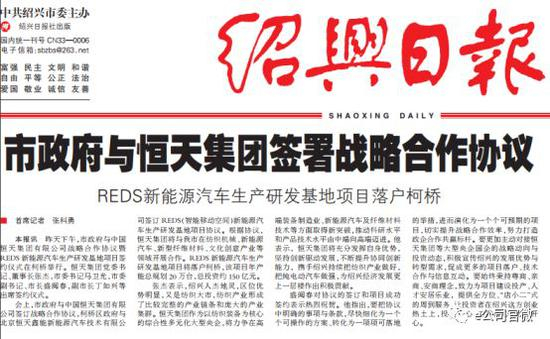 据称,REDS新能源汽车生产研发基地项目年产能总规划20万台,总投资约150亿元,张杰当天在签约现场表示,中国恒天将携手绍兴持续把纺织产业做好,把纯电动汽车做强,为绍兴经济发展更上一层楼作出积极贡献。