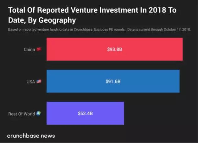 根据行业咨询机构Crunchbase发布的最新数据,2018年以来中国风险投资的总额达到了创纪录的938亿美元,领跑全球;排名第二的美国,2018年风投总规模为916亿美元,比中国低了22亿美元;