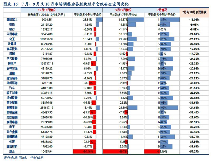 市场调整下引发股价下跌逼近预警线甚至平仓线,给投资者情绪带来一定损失,受股价下跌影响,放大了个股及行业爆仓风险。与7月初我们在《策略专题:股权质押风险全方位解析》中测算方法保持一致,本次测算聚焦于在经历10月市场深度调整以来各版块的平仓空间及高爆仓风险大小。