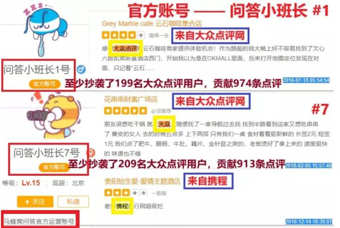 10月20日起,一篇题为《估值175亿的旅游独角兽,是一座僵尸和水军构成的鬼城?》的自媒体文章被刷屏。该文章指出,通过数据抓取和分析,发现马蜂窝上有7000多个抄袭账号,合计抄袭572万条餐饮点评、1221万条酒店点评,占到其官网声称总点评数的85%。