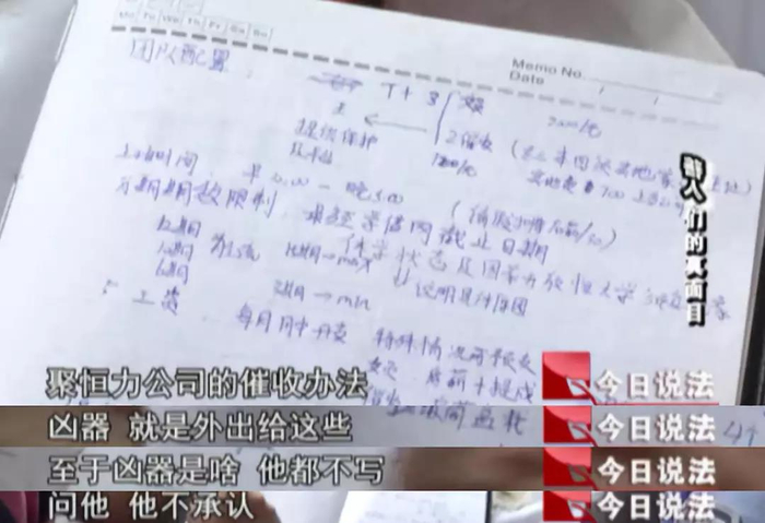 但在警方查获的物证中,却发现了记录在“聚恒力”公司工作手册上的催收办法。
