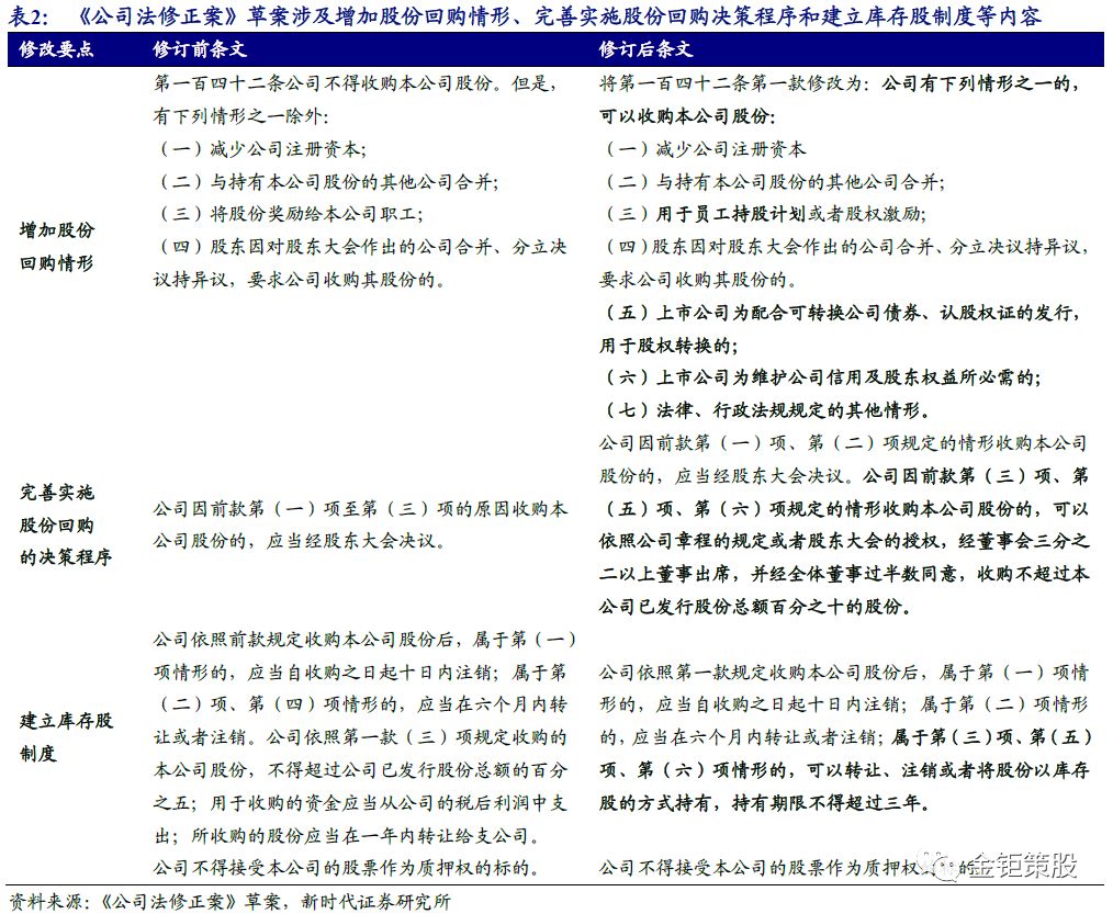 1.1、《公司法修正案》草案拟放宽股份回购,设立库存股制度