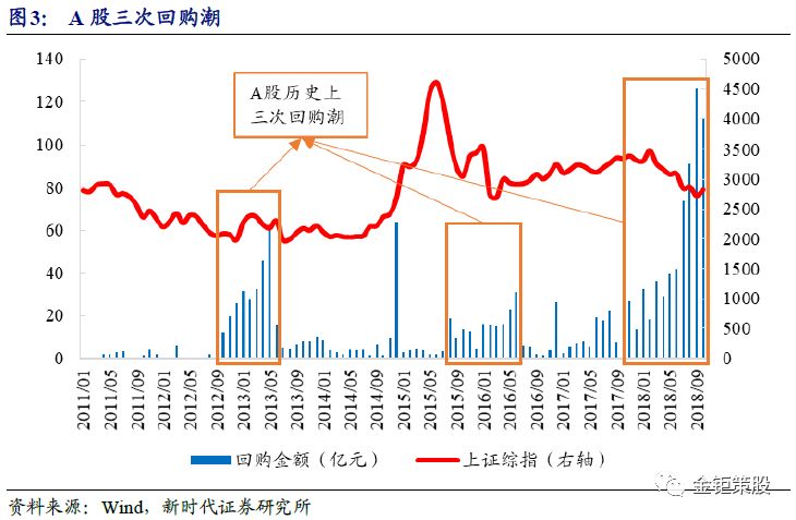 上市公司股份回购将掀起新浪潮。自2011年以来A股主要有三次比较大的回购潮,分别是2012年10月至2013年6月,发生公司回购91笔、总规模273.9亿元;2015年8月至2016年6月,公司回购363笔、总规模174.8亿元;以及2017年10月至今最大的这次回购潮,截至2018年10月23日公司回购笔数达到1385笔,总规模达651.1亿元。我们认为,随着库存股制度的建立,上市公司股份回购将掀起新的浪潮,而回购在稳定股价、融资并购等中的作用也将更加显现。
