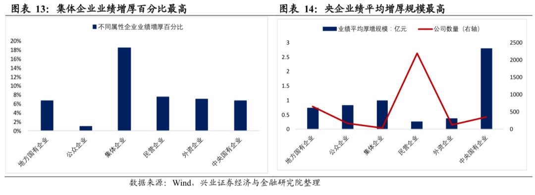 国有企业将显著受益于增值税“三并二”,预计业绩增厚规模高达1500亿元,我们猜测或与央企所在大部分都是制造业有关;民营企业的业绩增厚规模约560亿,仅次于国企。但就效率来说,集体企业业绩增厚百分比最高,接近20%,剩下国企、民企均在8%左右。