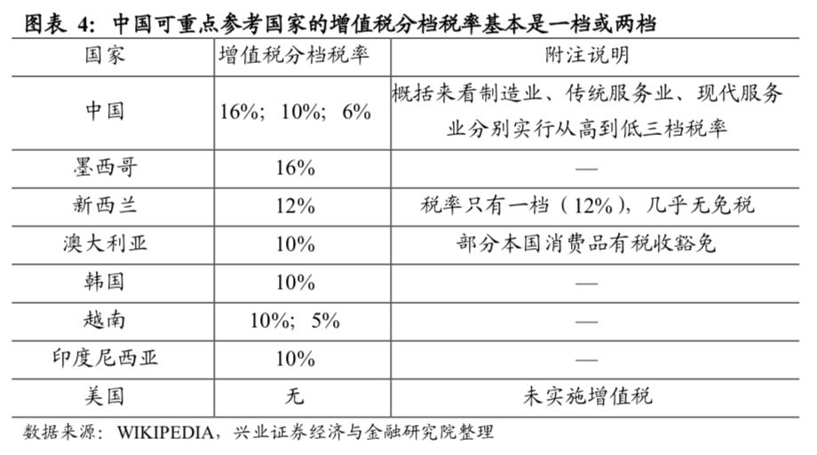中国可重点参考国家的增值税分档税率基本是一档或两档,税率普遍约10%