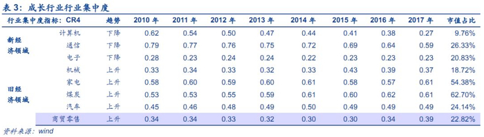 成长牛股稀缺性的第二个层面便表现在公司在行业竞争格局中的地位。我们认为一方面可以表现为市场份额,也就是行业集中度;另一方面则可以则是市值,即在资本市场受认可的程度。