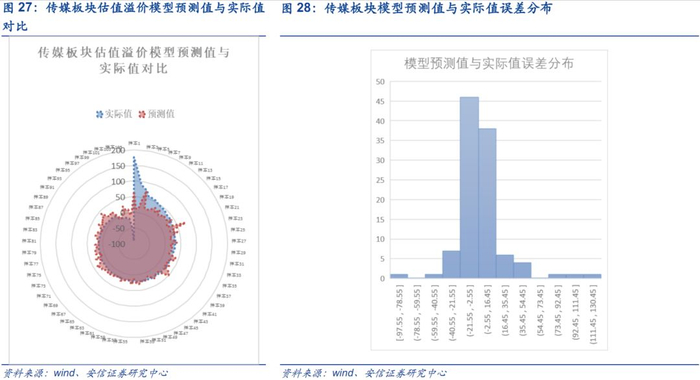 传媒行业中: 60支目前估值溢价被低估,46支估值溢价被高估,行业整体处于被低估阶段。