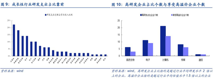 国防军工及传媒是两个对市场订单比较敏感的行业,其他主要成长风格行业的市场份额因素并不能为其估值溢价提供明显正面效应;