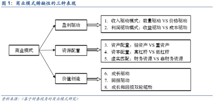 1.1 什么是成长牛股的稀缺性基因?从经济学的定义而言,稀缺性是指在特定时空里,相较于人类欲望的无限增长而言,特定资源的总体供给远远不足。在资本市场里,稀缺性是指资源由于供给与需求中存在的不对称,所带来的在资本市场中的投资机会。结合A股市场,我们认为成长牛股稀缺性最首要的是商业模式的稀缺性,其次是在行业竞争格局中的地位,最后才反映到公司经营的基本面上。