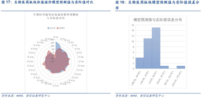 生物医药行业中:15支目前估值溢价被低估,17支估值溢价被高估,行业基本处于估值合理阶段;