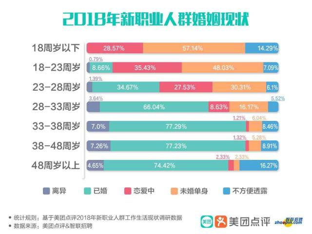 而在婚恋观上,新职业人群婚姻状态也符合晚婚的社会趋势,其中调酒师单身率最高。