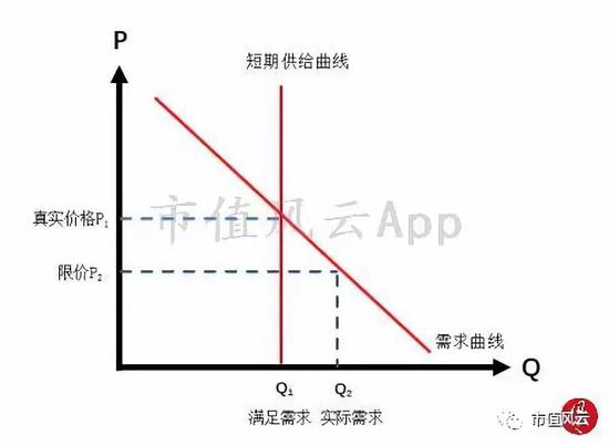 短期来看,采血浆站和提供血液制品产量是固定,这就造成市场产品的短缺,再加上政府限价P2,使得在这个限价的价格上,实际需求Q2远远超于Q1,血液制品稀缺。比如有些地区在正规渠道买不到货,只能去黑市以更高的价格进行购买。