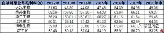 我们可以看到,2015年6月血液制品价格管制放开上涨后,各家上市公司2016年-2018年的毛利率整体上比2015年的毛利率都相对有所提高。