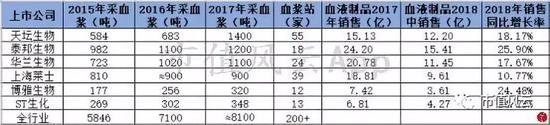 (2)从采血浆量来说,2017年依次排名为:天坛生物、泰邦生物、华兰生物,都是量产1000吨以上级别的公司。