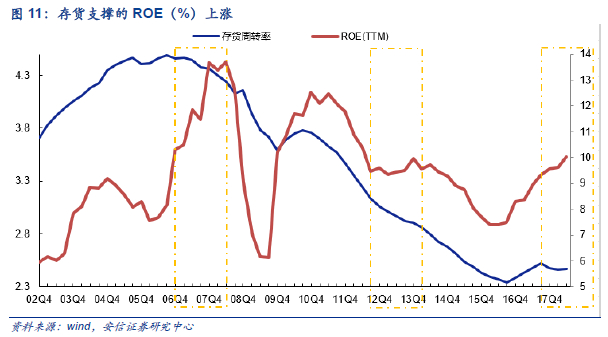 进一步,我们将站在资产负债表的角度,认为存货的变动或许是导致ROE能够持续上升的重要因素。