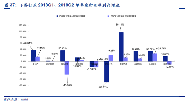 从已披露的所有2018三季度报业绩来看,18Q3下游各行业中,商业贸易、房地产、建筑装饰、休闲服务、食品饮料、纺织服装、交通运输盈利增长环比均有所下降, 农林牧渔盈利环比增长幅度较大。