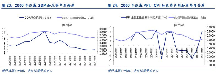 从目前PPI来看,短期总资产周转率的支撑依然存在,未来将逐渐下滑。从年度指标上看,总资产周转率基本和价格走势贴合,即在价格整体上涨时期,总资产周转率上升,反之亦然,说明价格上涨代表商品供不应求,销售收入大幅增长,进而使得总资产周转率上升。2018年1-9月PPI累计同比在4.00%,相较2017年6.30%环比下滑,但依然处于较高位置。因此,短期总资产周转率的支撑依然存在,未来则将逐渐下滑。