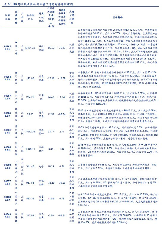 3、最后,我们将着重探寻造成Q3A股盈利下滑的主要原因,并将从板块、指数、行业(个股)层面进行深刻详细的解读。