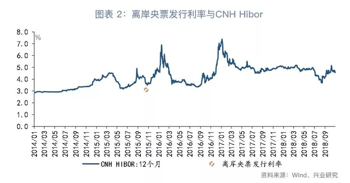 离岸人民币利率主要受汇率预期影响。2015年允许境外人民币业务清算行和境外参加行参与银行间回购后,在岸人民币利率对离岸的影响有所强化。此次离岸央票相对离岸人民币资金池的规模较2015年更大,且发生于在岸利率因跨年上行的阶段,可能推升离岸人民币利率。