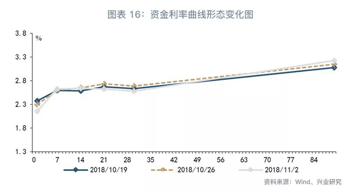 第二,从货币市场利率曲线形态来看(图表16),资金利率曲线在7天处上凸。