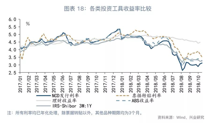货币市场投资工具方面,考虑到3个月资金已经可以跨年,3个月NCD发行利率或呈现波动上行的趋势。理财收益率方面,跨年因素对理财收益率有推升作用,但资产收益率回落抑制了理财收益率的上行空间,预计理财收益率将相对平稳。