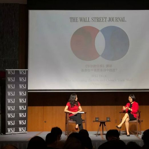 魏玲灵与汪涛在讨论会现场。 图片来源:Joyu Wang/THE WALL STREET JOURNAL