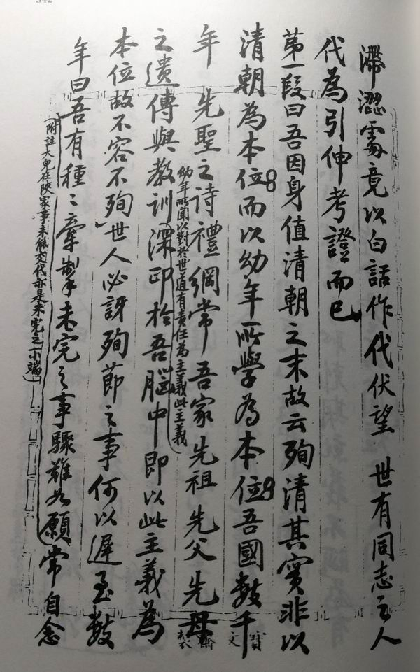 孔子云:志士仁人,无求生以害仁。孟子言:所恶有甚于死者,惟贤者能勿丧。吾因海宁王君静安之死,而忆及皋兰吴柳堂前辈(可读),与桂林梁君巨川(济),是皆能不求生以害仁,而知所恶有甚于死之义者。吴、梁、王三君,所处之时与地不同,而皆可以无死,然竟视死如归,彼与人家国、谋人军师、分宜握节死绥、致命遂志者,反靦颜而偷生,甚或作桀犬之吠,卖主媚敌以求荣者,何可胜道。宜乎如郑人之以不狂为狂,多方吹毛求死者之疵。昌黎所谓“小人之好议论,不乐成人之美”,固如是也。(《旧京诗存》卷六,民国刊本)