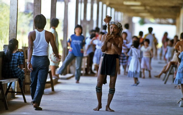 其实不只是长耳文化慢慢消失了。1982年我初到婆罗洲,那时的男生只穿一条有点像丁字裤一样的衣服,女生也只穿一条裙子,上半身是不穿衣服的。但后来所谓的“自由和隐私”,随着资本主义的流行服饰一下子就涌入了。当我第二次到那里时,到处都能看到奶粉和可乐的广告。当时我看到酋长的女儿给她小儿子喂奶粉,而她自己的奶水都沾湿整个胸口了。于是我就问她干嘛不用自己的奶水喂孩子,她说没有人这样喂的,然后指了指外面的广告牌说:“他们都是吃奶粉长大的,吃这个长大以后会比较有钱。”