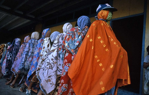 以前部落庆祝丰收节时,女生就把自己包成上面图片里的样子,让别人来辨认,答对的人会有奖品。以前的奖品是一支吹箭、一把砍刀,后来的奖品是一瓶可乐,一打啤酒,但是奖品不用准备太多,因为人和人的关系不再像以前那么亲密了,即使取下这身行头还是认不出来对方是谁。再后来,便没人再玩这个游戏了。