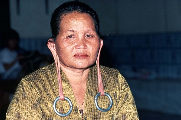 达雅族有许多独特而古老的习俗,比如这里的女性会有很长的耳垂。在古代中国,如果一个人的耳垂过肩膀,那就是富贵相和帝王相。但这里的女子从小就会在耳垂上挂重重的耳环,久而久之就拉长成过肩甚至及胸的耳垂。基于这样一种习俗,他们发展出一种“长耳文化”、也叫“大耳文化”,因为他们的耳朵都不太一样的,其中有一些像“犬”字,所以也叫“犬形文化”,现在还保留着这种文化的图腾。