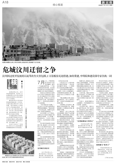 县委县政府大楼本有重建的机会,但为了居民安置区建设前放弃了。那片安置区最初规划建成17层高楼,以节约土地,但即将搬进安置区的老人们不愿意。他们对地震时的经历心有余悸,对高楼电梯心生忌惮,最高只能接受8层。