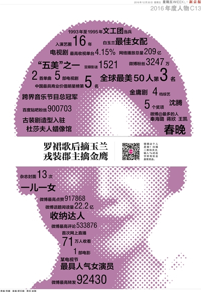 2016年12月30日新京报版面。刘涛被评为新京报2016年文娱年度人物。