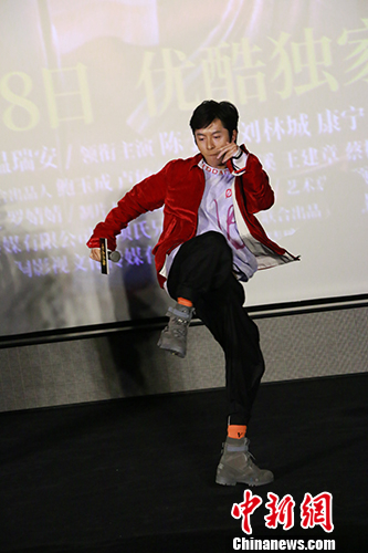 图为主演刘林成现场展示功夫。 中新网记者 翟璐 摄