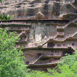天梯山石窟也称大佛寺,位于武威市城南约50公里的天梯山上,最早开凿于东晋十六国北凉时期,距今已有1600余年历史。公元439年,北魏灭北凉,有3000余名凉州僧人随流民迁至平城(今山西大同),也有部分僧人向西去了敦煌一带,他们同时也带去了“凉州模式”的佛教石窟开凿风格。