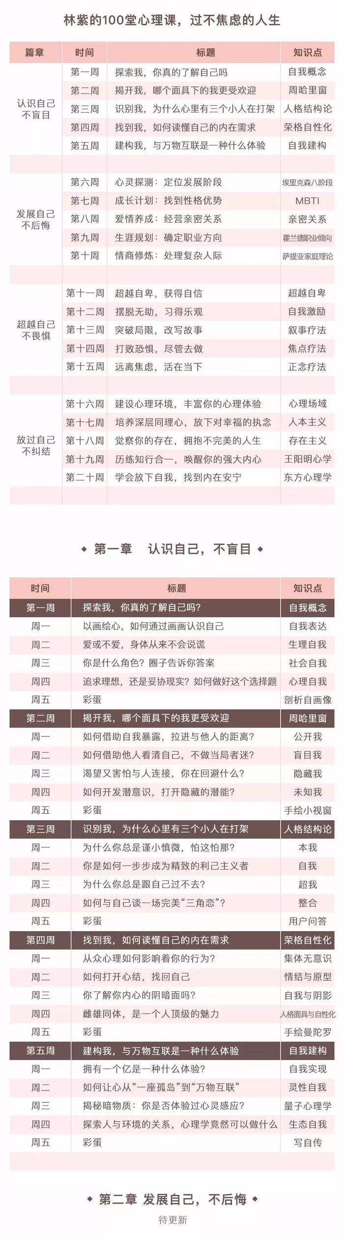 课程凝练了林紫老师20年咨询经验,与15个心理学流派关于“自我”的核心观点,并将与心理学互通的哲学、心学、佛学和艺术4大领域的核心理念贯通其中,让你不仅能掌握扎实的心理学基础知识,还能形成更多元、深刻的理解。