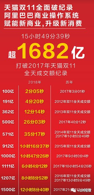 在今天上午8时8分52秒,天猫双11成交总额就已突破1207亿,轻松超过2016年双11全天的成交总额,用时比去年再快5小时。2017年天猫双11直到当天下午的13点09分49秒,成交总额超过1207亿。