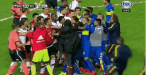 但场面上的混乱程度不输两队历史上的任何一场德比战——特维斯与河床后卫迈达纳发生冲突,被后者顶翻在地。随后双方球员纷纷介入,变成了一场40人的大混战。